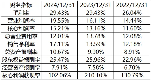 总资产报酬率从2022年的8.91%提升至2024年的10.67%,说明公司运用全部资产获取利润的效率在稳步提高,资产运营能力得到增强。股东权益报酬率连续三年保持在22%以上,远高于行业平均水平。表明公司为股东创造价值的能力仍非常强劲。