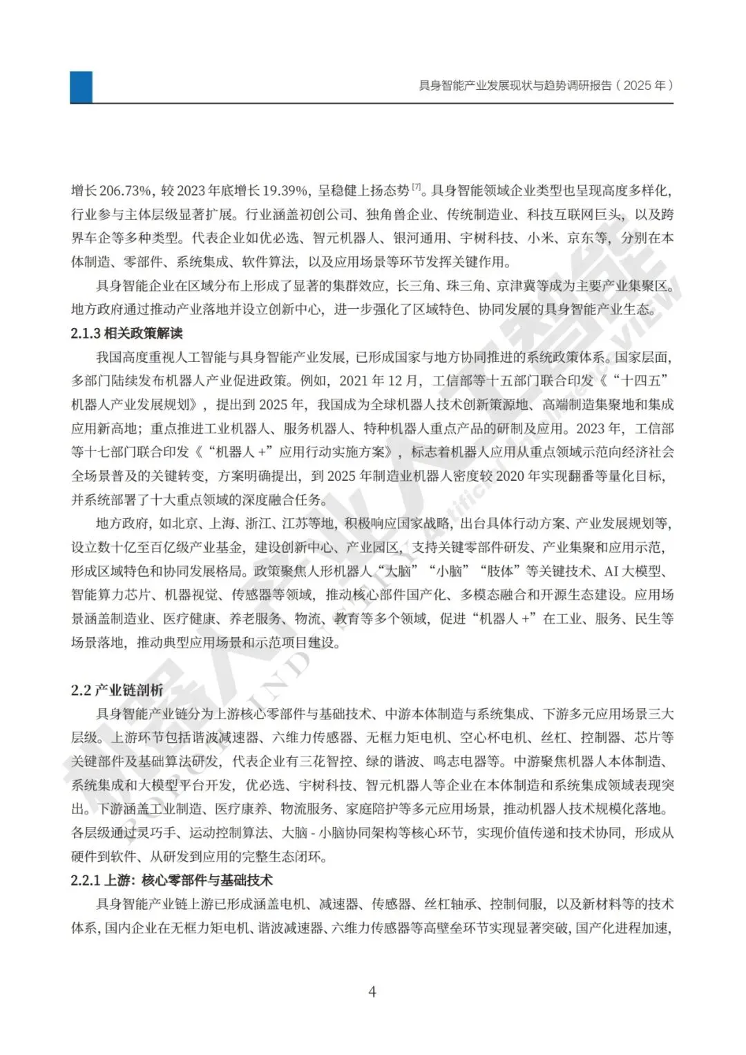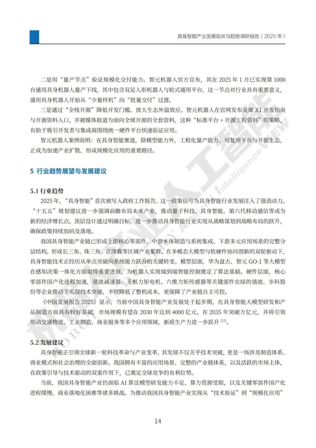 《具身智能产业发展现状与趋势调研报告(2025年)》由《机器人产业》与《人工智能》编辑部联合编撰,是2025年具身智能被纳入国家重点培育未来产业、写入 “十五五” 规划后的全景式产业分析报告,通过全产业链调研,梳理了产业发展脉络、剖析核心问题、总结典型案例并提出发展建议,为产业发展提供系统性参考。