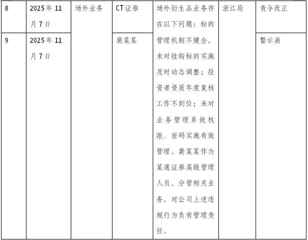 据公开信息统计,2025年证监会系统对证券公司自营业务开出监管罚单共9张,其中涉及自营业务3张、场外业务6张。同比2024的19张罚单,处罚情况大幅下降,未形成集中爆发态势。
