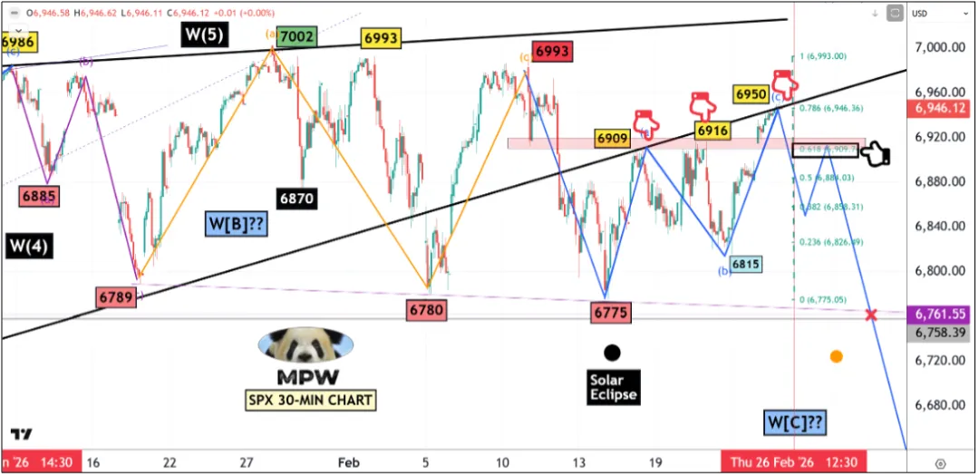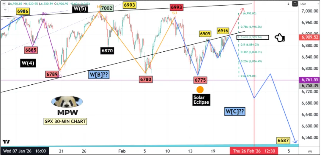 以下是2月21日发布的 SPX 30分钟图表