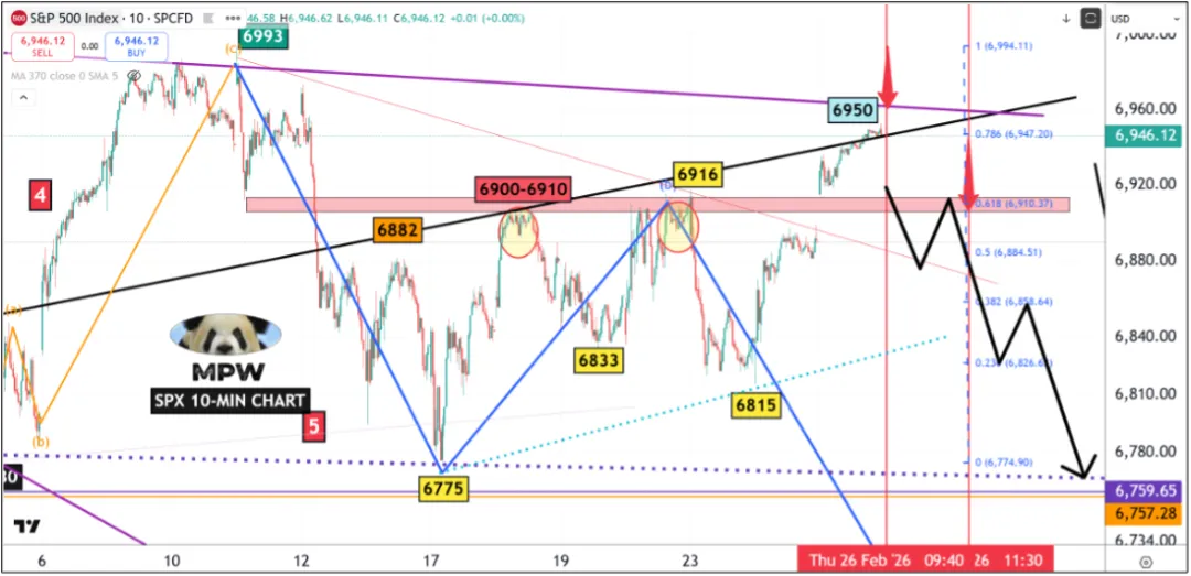 周四开盘时,标普指数将会回撤至 6900-6910 关键位下方,并启动贯穿至 3 月 9 日的主跌浪。系紧安全带。