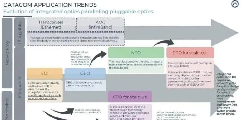 值得指出的是,CPO产业热潮本身也不是没有风险。高集成设计在方便部署的同时,出现局部故障时可能需要整体拆换,维修不如传统方案灵活,部分企业对后期维护仍有顾虑;高度紧凑的封装使得热管理压力陡增,局部温度可达85℃,超出现有主流激光器60℃承受线,产线良率与测试难题待攻克。此外,传统1.6T可插拔光模块已实现量产,3.2T产品也预计2028年投放市场,这一技术路线的快速进步给CPO全面“接管”铺路带来了挑战。更有过渡方案(如LPO、NPO)以较低功耗、生态兼容性获得部分场景青睐,对CPO全面替代形成阻力。