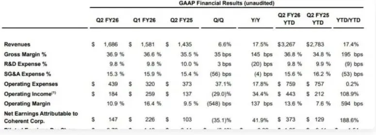 这一点,从Lumentum的订单爆满现象就可见一斑。这家光学元件头部厂商2026财年Q2收入达到了6.655亿美元,同比增长65%,超出市场预期。CPO相关业务首次成为推动营收提升的主力之一,公司披露一笔价值数亿美元、服务横向扩容场景的高功率激光器订单,将于2027年上半年交付。公司CPO相关货品已排产至2027年,且客户涉及多家大型AI数据中心,不再是单一主顾。CPO相关产能基本售罄,扩产还落后于订单——这在半导体行业无疑是“最高级别”的产业信号。