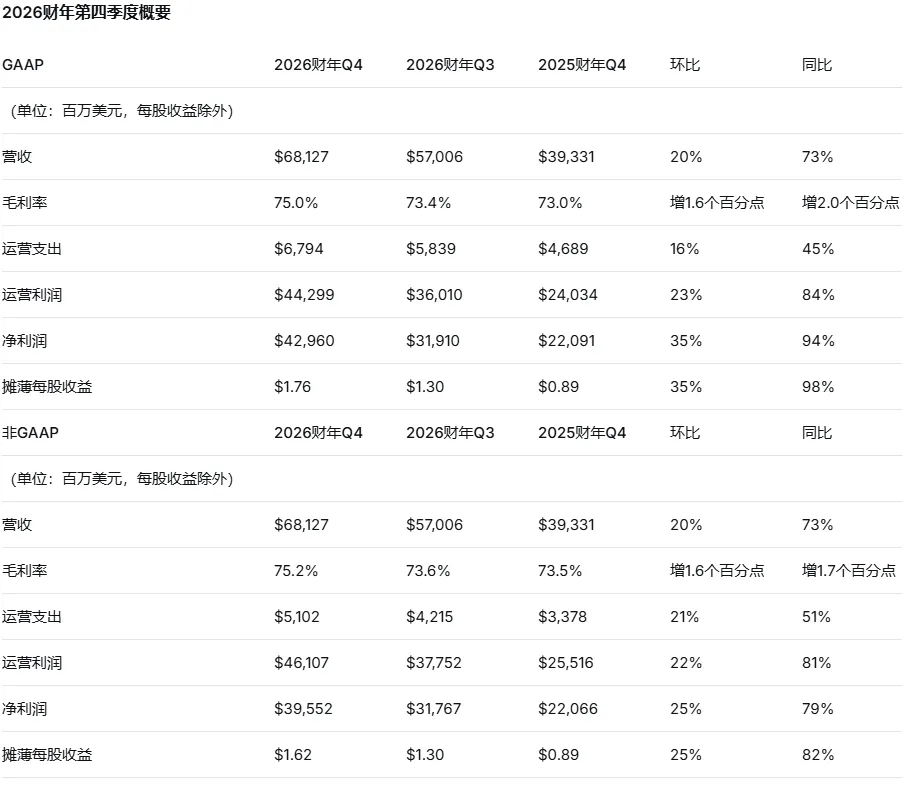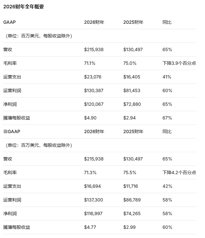 第四季度GAAP和非GAAP毛利率分别为75.0%和75.2%。2026财年全年GAAP和非GAAP毛利率分别为71.1%和71.3%。