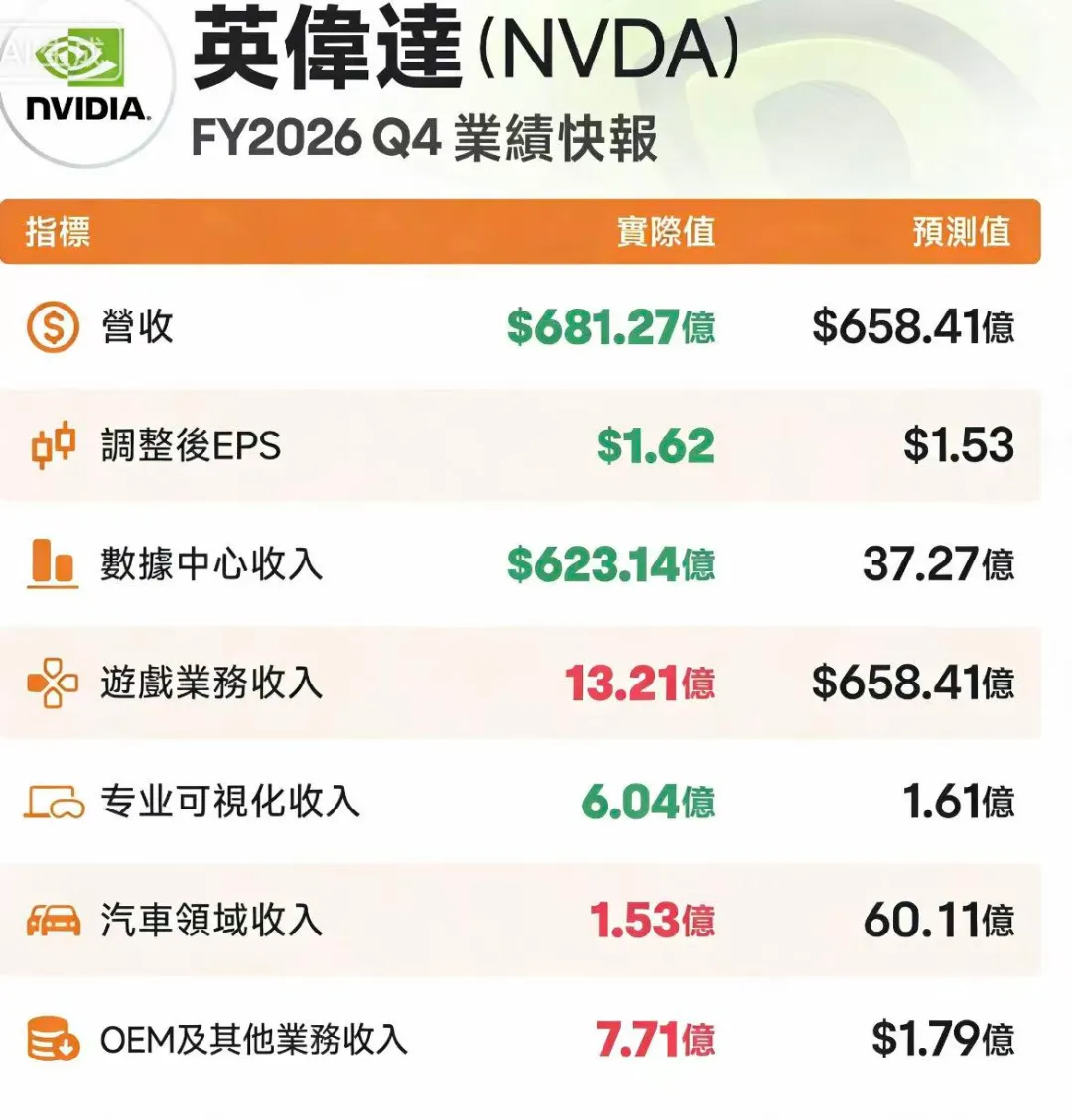 全球芯片巨头英伟达今天发布了一份强劲的财报,他们26财年Q4营收达到681亿美元同比增长73%。净利润是429亿美元,同比增长94%。双双超过市场预期,