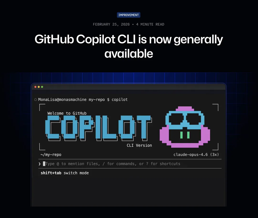 Copilot CLI 宣布已正式发布 (GA),用户现可在工作环境中使用。此次更新引入了 /research 命令,该功能结合 GitHub 高级代码搜索工具与 MCPs 动态获取内容,支持对全球任何 OSS 仓库进行深度研究。用户利用该功能可生成报告、导出到 gists 并与团队分享,以协作完成代码调研。