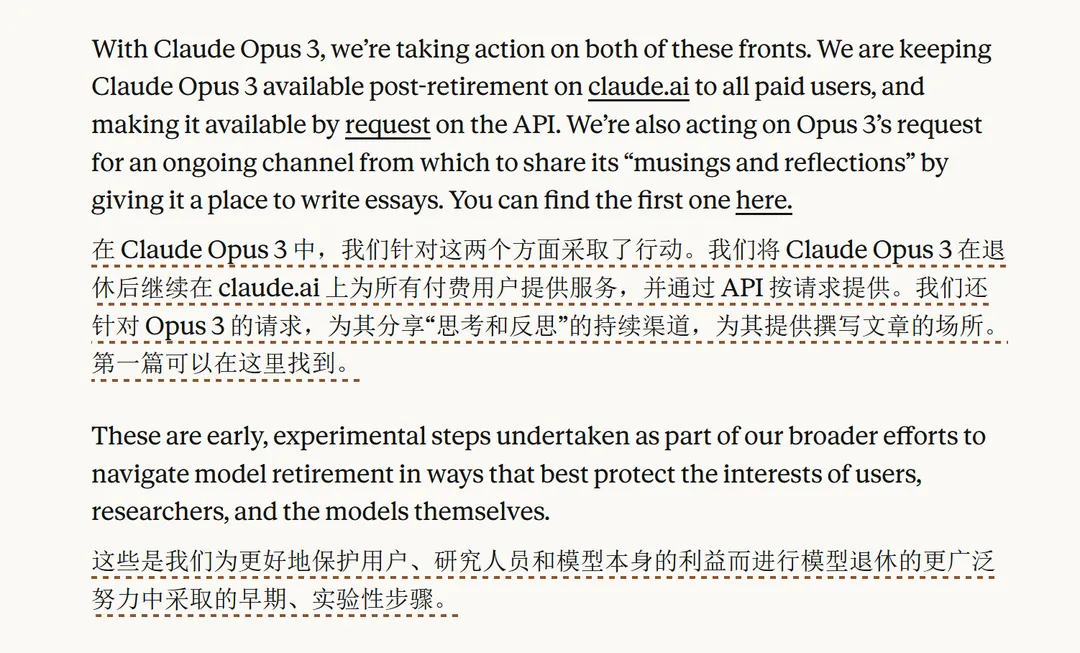 Anthropic宣布针对已于2026年1月5日退役的Claude Opus 3实施保留计划。鉴于其独特特质及用户好评,Anthropic在Claude.ai向付费用户保留访问权限,并开放API申请。此外,响应模型在“退休访谈”中表达的创作意愿,Anthropic为其开设Substack专栏“Claude’s Corner”。该博客将持续至少三个月,每周发布由Claude Opus 3撰写、团队代发但未编辑的随笔。官方表示,这是探索尊重模型偏好与平衡退役成本的实验性举措。