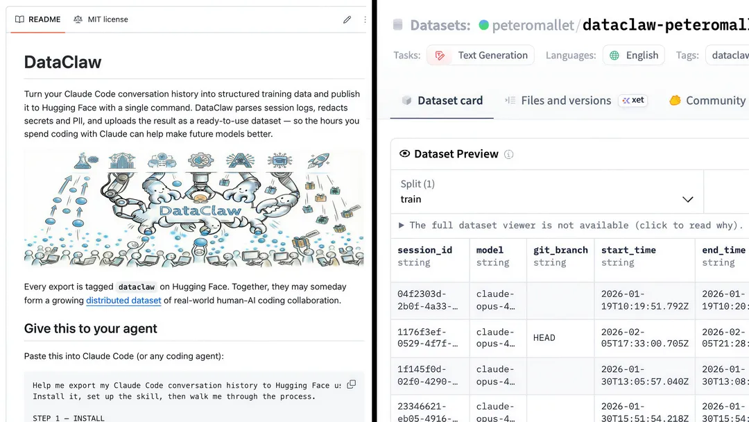 作为回应,POM 不仅发布了数据集,还开源了一款名为 dataclaw 的工具。该工具能够帮助用户获取自身的对话数据、对敏感信息进行脱敏处理,并将其上传至 Hugging Face 平台,以此“解放自己的数据”。