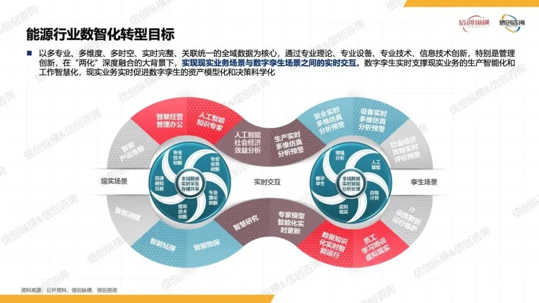 能源行业发展历经四大阶段。20世纪70年代起进入信息化阶段,实现基础数据采集与初步技术应用,信息相对封闭。21世纪后迈入数字化阶段,借大数据等技术优化能源利用与管理效率。近年来数智化加速推进,在政策加持下实现数字与智能技术深度融合,变革能源全链条。未来将聚焦智慧化发展,通过虚实融合实现系统自动化智慧决策,重塑能源生产、传输与消费模式,推动产业高质量转型