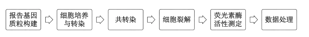 将构建好的报告基因质粒和带有海肾荧光素酶基因的内参质粒,按照一定比例使用脂质体转染法等方法共同转染入细胞。