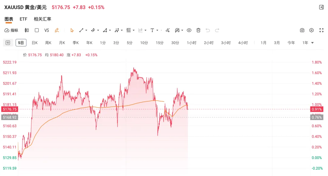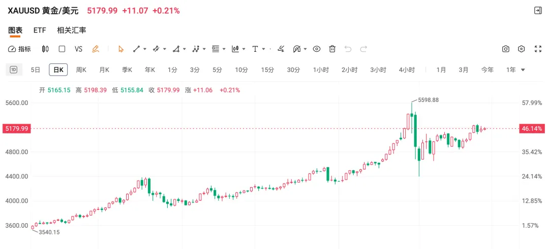 黄金现货昨晚夜盘一度突破5200美金,随后回落,继续震荡