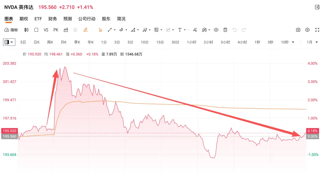 财报公布后英伟达股价短线拉升4%,随后重新回落