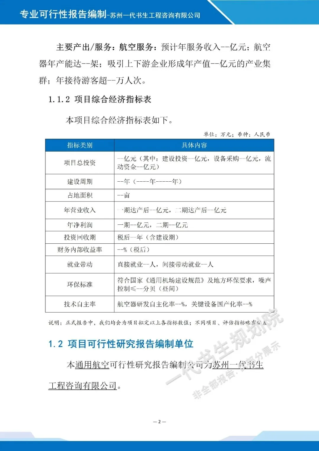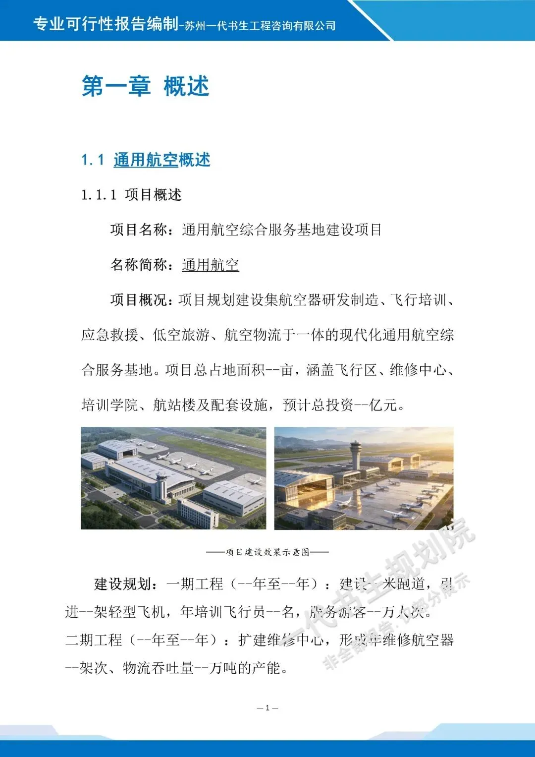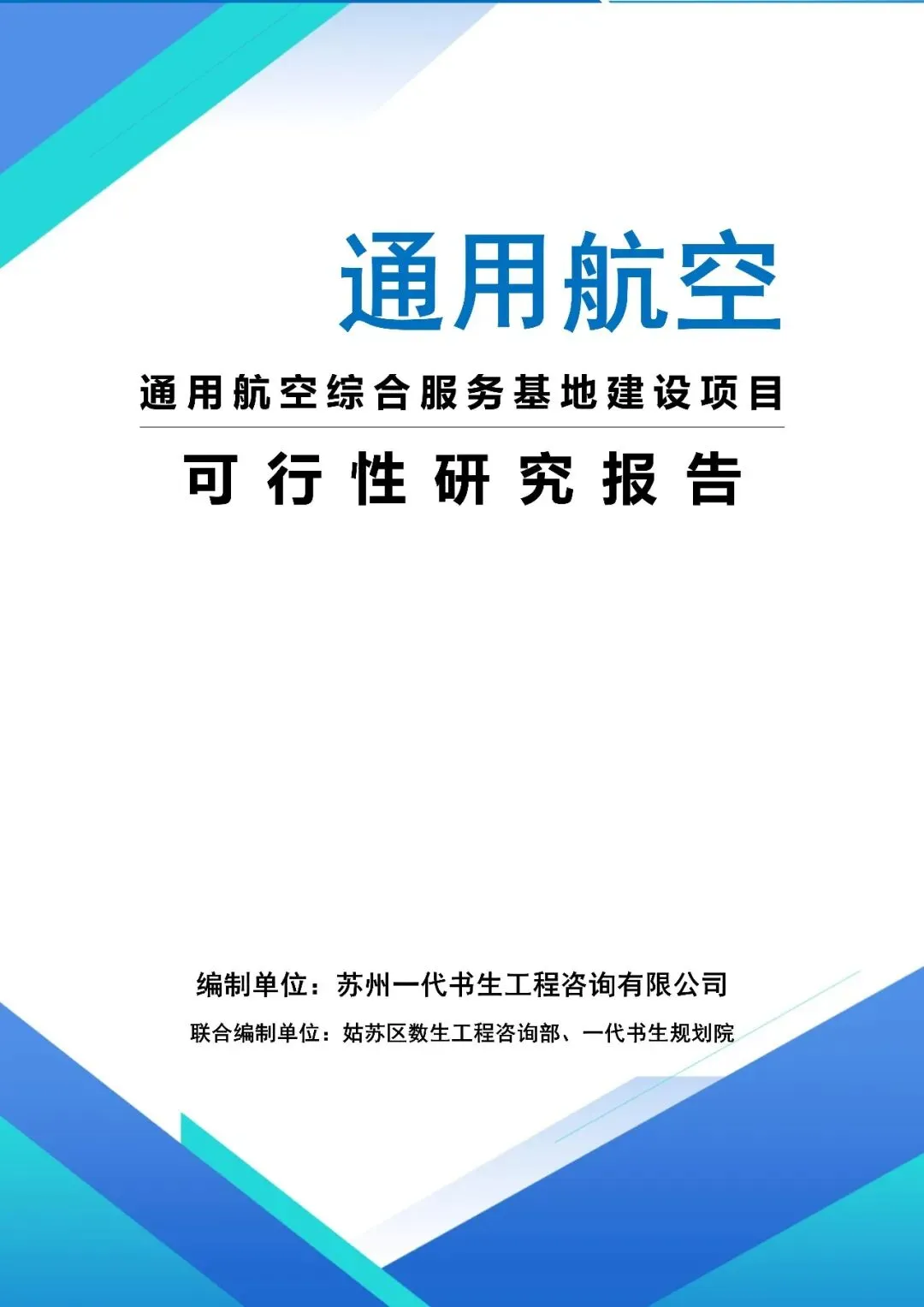 本通用航空项目可行性报告报告由一代书生工程咨询有限公司编制,聚焦通用航空综合服务基地建设可行性,核心要点分三方面,兼顾政策合规、实操落地与效益平衡,为项目建设、投资决策及运营规划提供科学支撑。