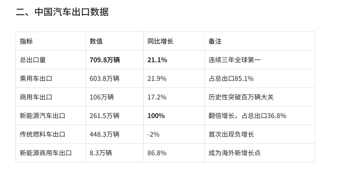出口结构优化:新能源汽车出口占比提升,商用车出口突破百万辆