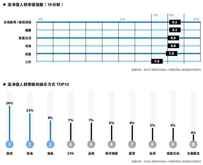 同时,健康作为幸福感的根本保障,更好的身体状态、更少的健康问题及医疗依赖,也显著增强了个人幸福感。本质上,这两大幸福支点的凸显,反映了高净值人群从经济理性向价值理性的升华:他们正将金融资本持续转化为人力资本与健康资本这两种更具根本性的生产性资产,从而在不确定性中构筑起幸福的韧性根基。