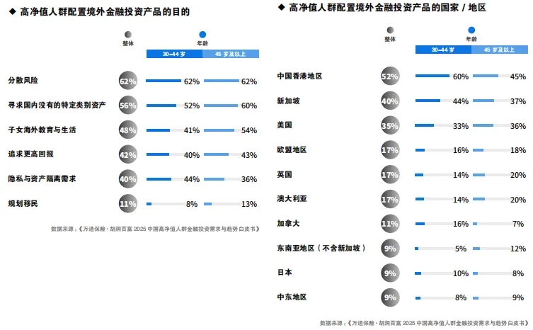 年轻群体更高比例配置中国香港和新加坡等华语地区,因其处于财富积累期,风险承受能力较强,更倾向于捕捉亚太新兴市场的增长潜力与结构性机会;