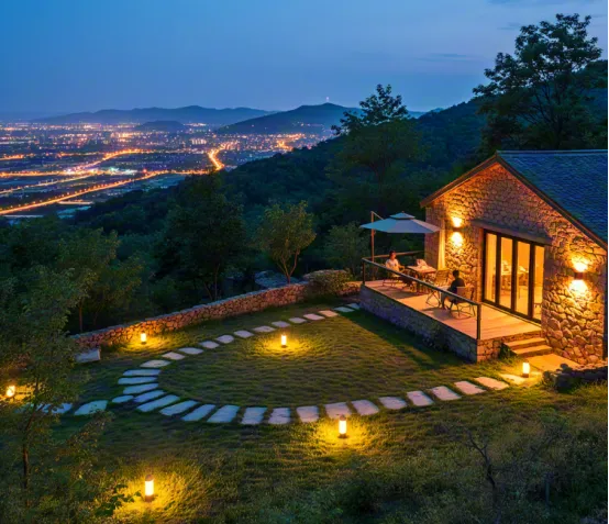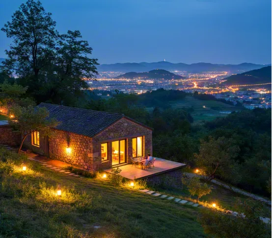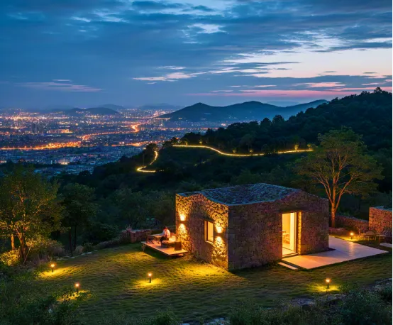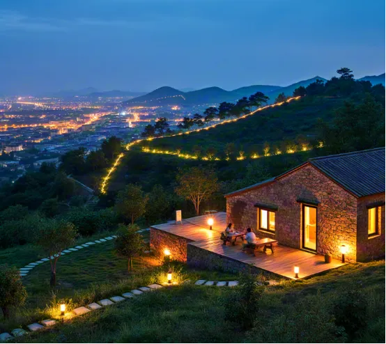 灯光设计:布置软灯带与灯条,非照明用,而是“氛围用”。夜晚,灯光如星河流淌于山间,勾勒出山体的轮廓,与星空融为一体。