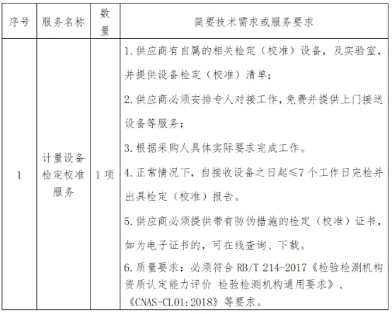 2.本次计量检测服务为统一打包,分为强制检定计量器具和非强制检定计量器具。