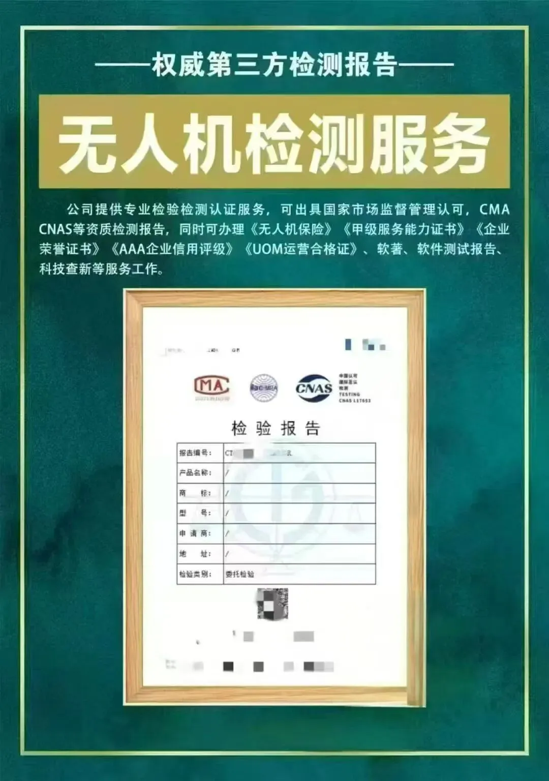 无人机检测无小事,资质合规是关键。选择一家正规、专业的检测机构,不仅能确保检测报告有效可用,更能帮您规避经营风险、提升核心竞争力。如果您有无人机检测报告办理需求,或想进一步了解CMA/CNAS资质鉴别细节,欢迎联系我们,我们将以专业的服务、精准的检测,为您提供全方位的检测解决方案,助力您高效合规经营、拓展广阔市场!