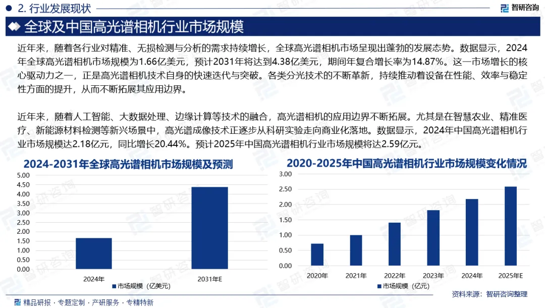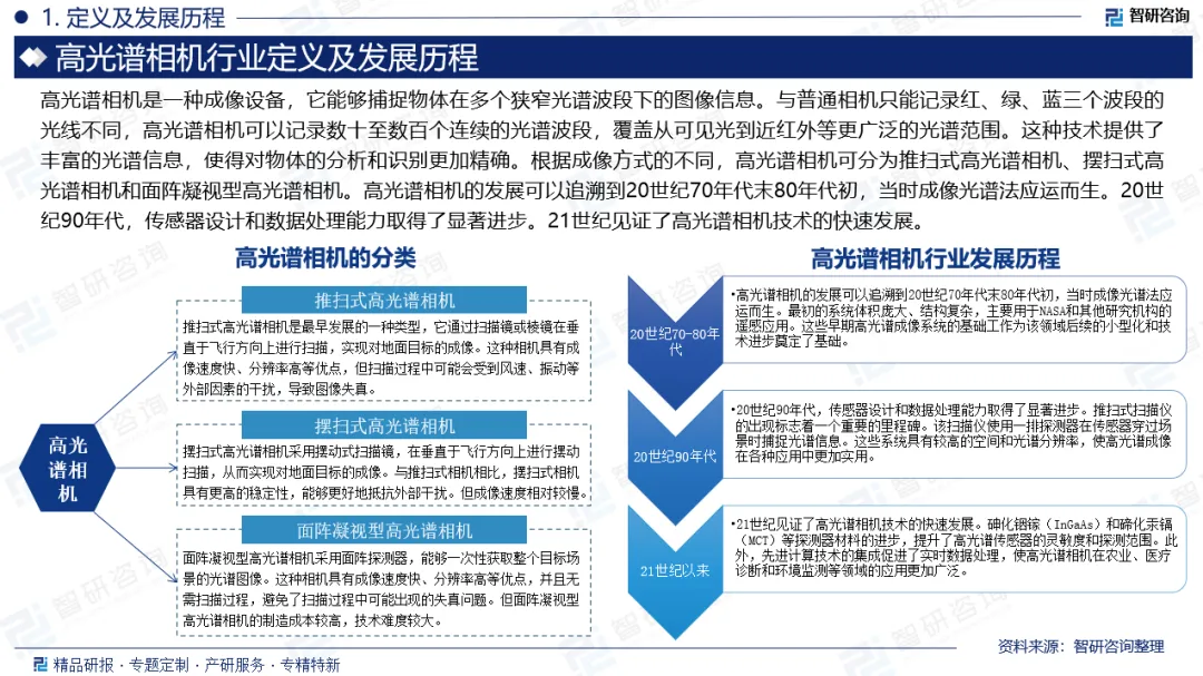 基于此,依托智研咨询旗下高光谱相机行业研究团队深厚的市场洞察力,并结合多年调研数据与一线实战需求,智研咨询推出《2026-2032年中国高光谱相机行业市场现状分析及投资前景研判报告》。本报告立足高光谱相机新视角,聚焦行业核心议题——变化趋势(怎么变)、用户需求(要什么)、投放选择(投向哪)、运营方法(如何投)及实践案例(看一看),期待携手行业伙伴,共谋行业发展新格局、新机遇,推动高光谱相机行业发展。深耕中国高光谱相机领域十余年,智研咨询愿携手行业企业,提供有效信息、专业咨询及定制化解决方案,助力高光谱相机产业持续发展。