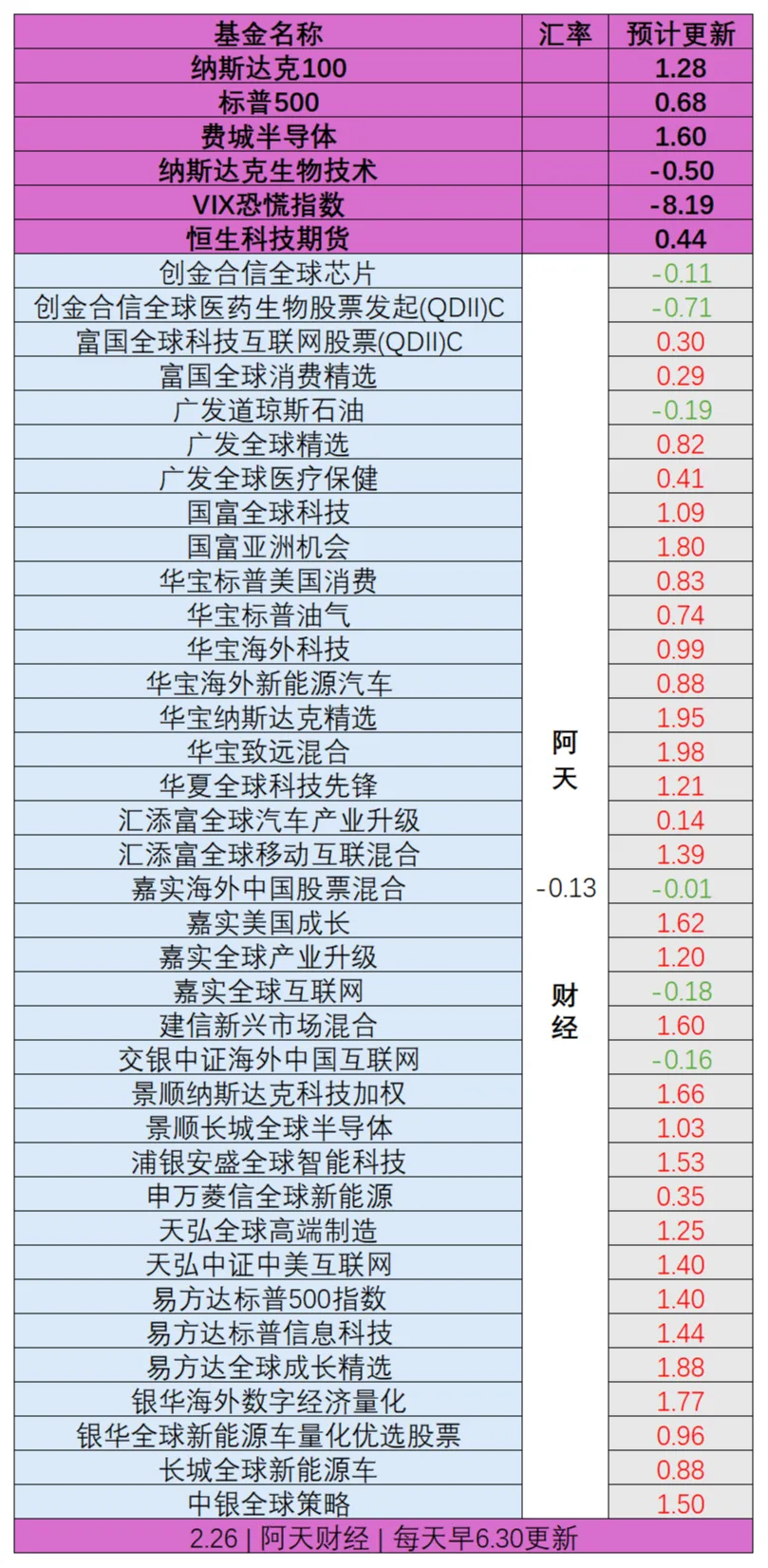 一 昨夜热门美股基金估值(44支,不断更新中)