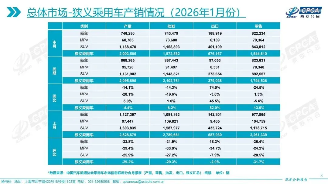 2026年1月份全国乘用车市场深度分析报告 | 附下载