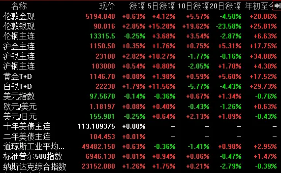 市场的全面上涨表明,在宏观因素与地缘风险交织的背景下,资金正持续流入金属市场寻求配置机会。