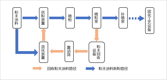 ③改进粉末涂料回收装置:粉末涂料与传统涂料相比优点之一是喷涂过程中喷逸粉末涂料可以回收利用。要完全实现粉末涂料高效回收利用,需要粉末涂料供粉装置能快速更换粉末,包括更换粉末颜色或品种,以及粉末涂料的回收设备(主要是喷粉室的内部板壁清理)能实现快速清扫。