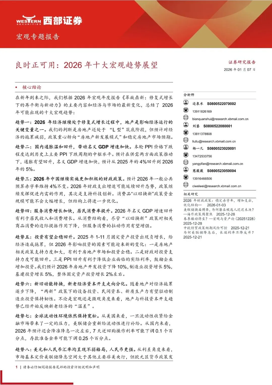 报告名称:2026年十大宏观趋势展望(文末附全文PDF) 出 品 方:西部证券