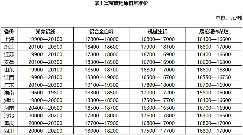 四、废铝相关产品价格情况
