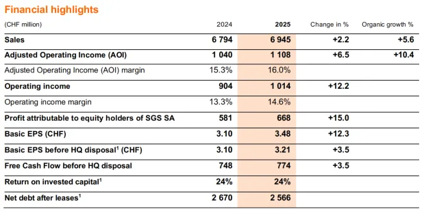 2026年2月11日,SGS发布了2025年度业绩报告。