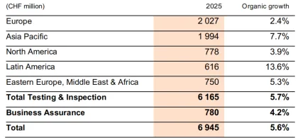 •可持续发展在2025年实现了15.1%的总增长,主要由可再生能源和温室气体验证服务、 PFAS 测试、对循环相关服务(包括回收材料测试和认证)需求上升,以及所有地区 ESG 审计持续增长的势头所驱动。