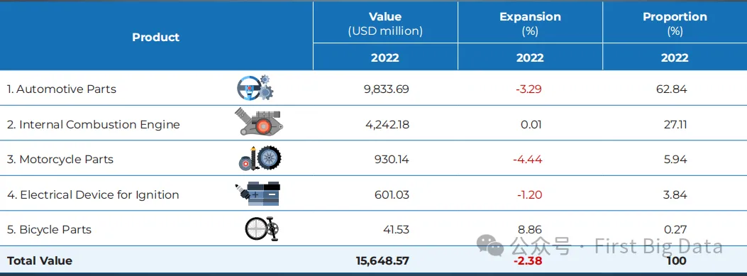 泰国的汽车零部件产业具有显著的出口导向特征,相当一部分产量被输往国际市场。国家的战略地理位置和发达的物流基础设施为汽车零部件向区域及全球客户的出口提供了便利。