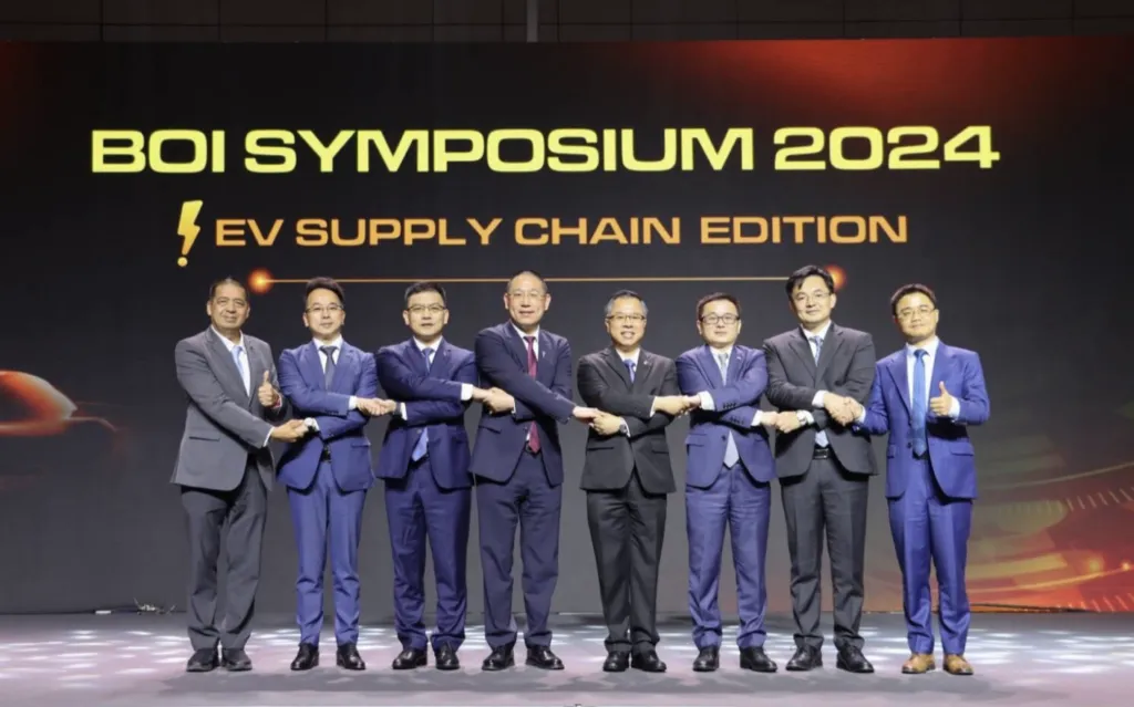 2024年5月17日,在泰国投资促进委员会(BOI)主办的“BOI研讨会:电动汽车供应链”活动上,中国知名汽车制造商——比亚迪、名爵、长城汽车、NETA、长安、广汽Aion和Omoda&Jaecoo首次齐聚一堂,展示他们在泰国电动汽车行业的蓝图,提出了在泰国国内采购零部件的计划,旨在将泰国制造商提升到全球供应链中心,并描绘了泰国全球电动汽车制造中心的新蓝图。