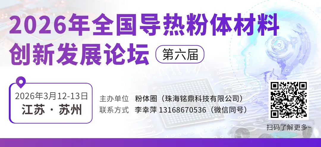 查看2026年全国导热粉体材料创新发展论坛(第6届)详情,请点击文末“阅读原文”!