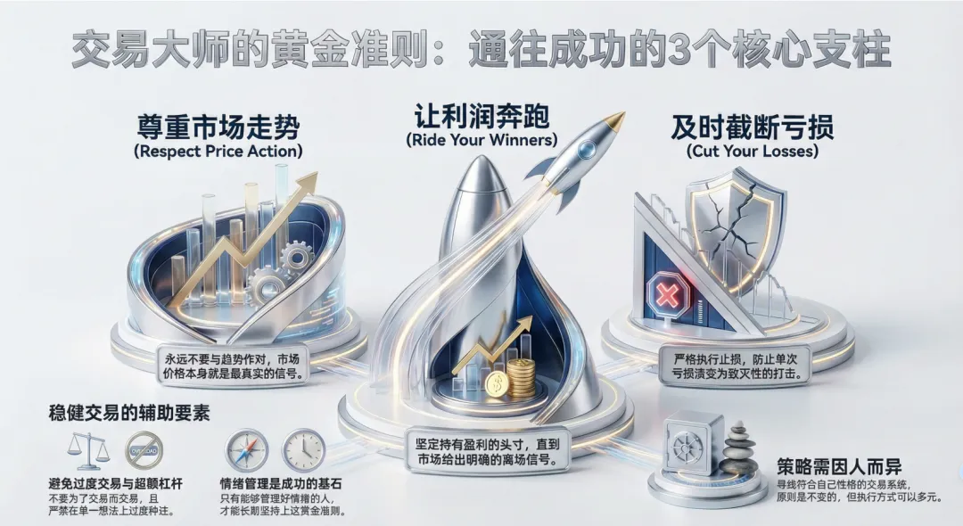 在AI足以伪造完美权益曲线(Equity Curve)的今天,科伊尔与杰克·施瓦格(Jack Schwager)合作的新书被赋予了更严谨的“架构审计”色彩:这是一套针对交易员特质、性格稳定性及策略健壮性的多维度压力测试。为应对日益精进的造假技术,验证过程包括了对纳税文档(Tax Documents)的深度审计,部分案例甚至引入第三方机构进行全流程账目核实,确保受访者的业绩并非“幸存者偏差”或数据操纵的结果。2. 跨越世纪的交易公理:三大核心原则的深度解析