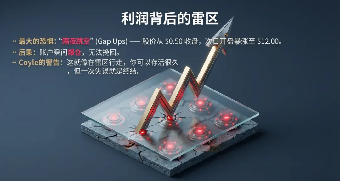 这一策略的历史可追溯到80年代佛罗里达州的“锅炉房(Boiler Room)”时代。当时20多岁的经纪人开着保时捷,利用庞大的销售团队(Sales Force)推高归零股。现代做空者则是这种博弈的“另一面”:他们利用这些公司必然归零的确定性,在价格力竭期介入,通过寻找昂贵的券源进行博弈。3.2 极致风险评估:地雷阵中的博弈