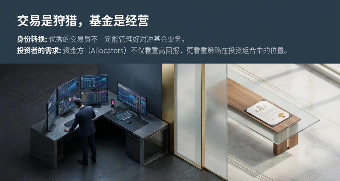 成功的细价股交易员在积累首笔原始资本(First Stake)后,往往会选择“战略迁移”。这种转型通常并非因为策略失效,而是受限于**资金容量(Capacity Limit)**与长期的心理压力,他们更倾向于转向期权或大盘股策略,以寻求更优的风险调整后收益。4. 商业模式与交易本质的冲突:个人交易员 vs. 对冲基金业务
