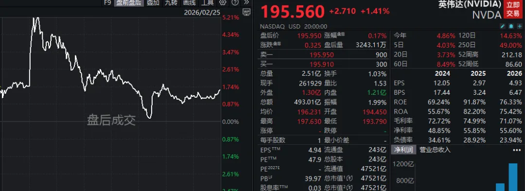 先聊聊英伟达,很多人不理解,明明营收和利润都超预期了,凭什么砸盘?其实金融市场交易的从来不是“过去的现实”,而是“未来的预期”。英伟达就像班里那个每次都考100分的顶级学霸。这次期末考试,他考了98分,绝对成绩依然碾压全班,但因为大家对他这次的期望是100分+10分(附加题也得全对),一旦他只考了98分,资金就会觉得惊喜不够。 在极其拥挤的交易里,‘没有巨大的惊喜,就是利空’。 这就是所谓的Buy the rumor, sell the news(买入预期,卖出事实)。所以大家会看到昨天英伟达公布财报后的跳涨4%到达203元后,一路又回到195附近,涨了个寂寞。