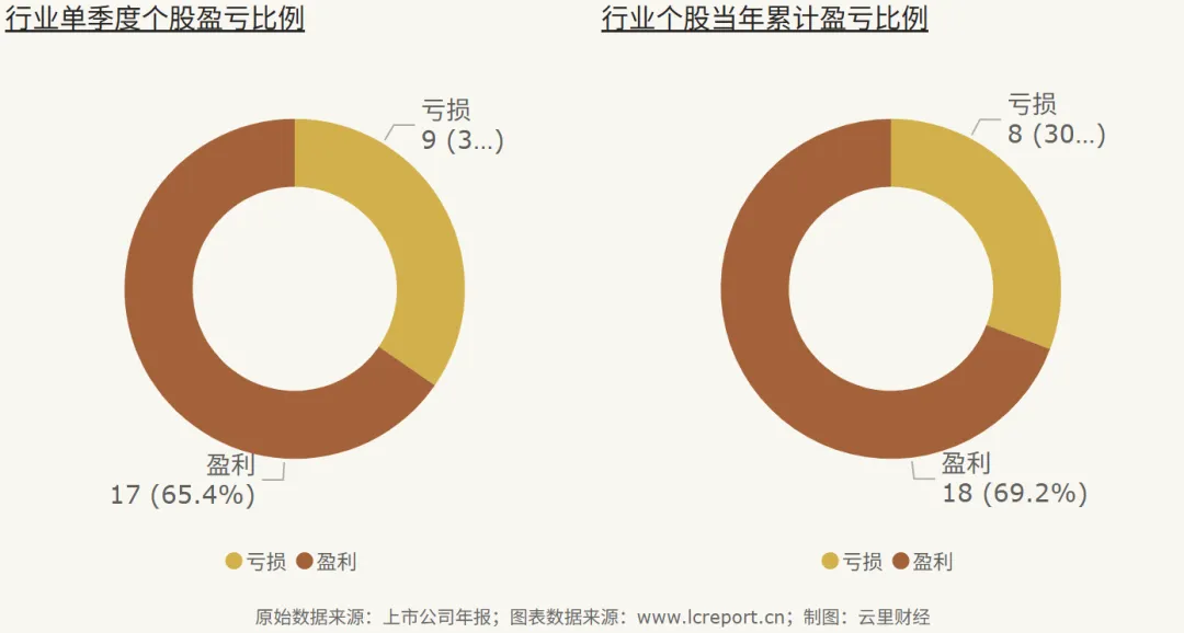 2025Q3季度电池业有17家沪深A股上市公司录得盈利,占比65.38%,近三成企业处于亏损状态,行业盈利分化态势加剧。