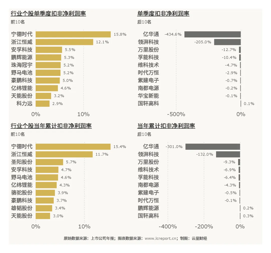 宁德时代单季扣非净利润接近行业总利润的92%,累计扣非净利润占行业总利润的91.6%,是行业盈利的绝对支柱,而亏损企业多为中小市值标的,面临成本高企、营收规模小、产品竞争力不足等经营压力,盈利端的马太效应较营收端更为显著。显然,对于该板块中小规模的上市公司而言,从财务角度看似乎毫无参与竞争的意义。