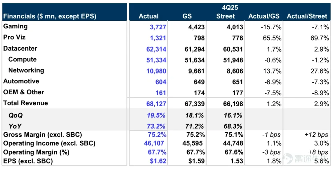 从营收来看,英伟达四季度营收681.27亿美元,高于市场预期的658.41亿美元,同比增长73%