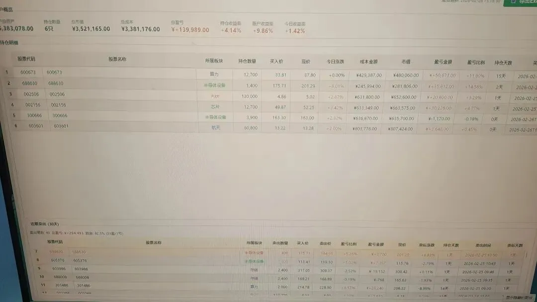 芯碁微装两天小赚14.5%,今天买了江丰电子和再升科技,好胆量。