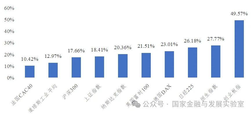 2025年全球主要股市均上涨,涨幅介于10%~30%之间,中国股市表现强势,创业板指数上涨近50%,涨幅位列全球主要股指第一,香港恒生指数上涨27.7%,涨幅位列第二。
