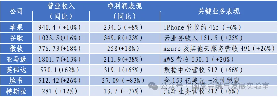 表5 2025前三季度美国七巨头业绩情况表(单位:亿美元)