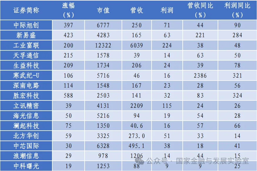 表62025年前三季度人工智能板块部分公司业绩表现(单位:亿元)