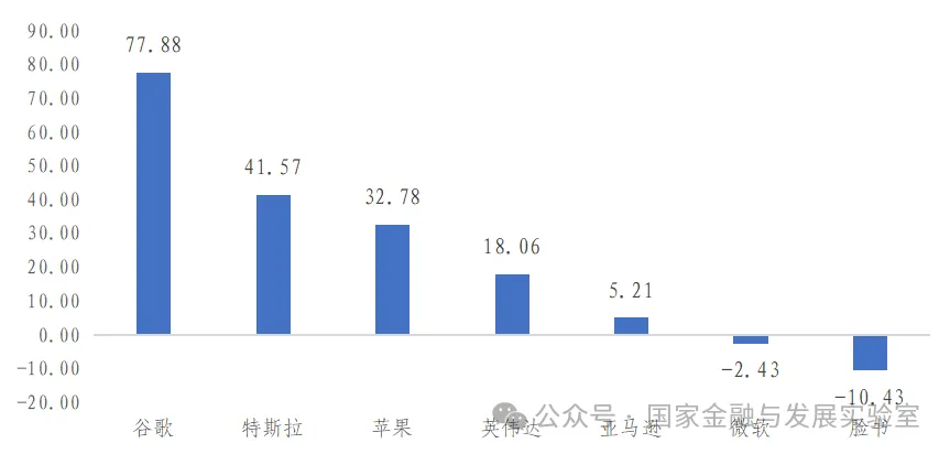 图5 2025年下半年科技“七巨头”的股票上涨幅度(%)