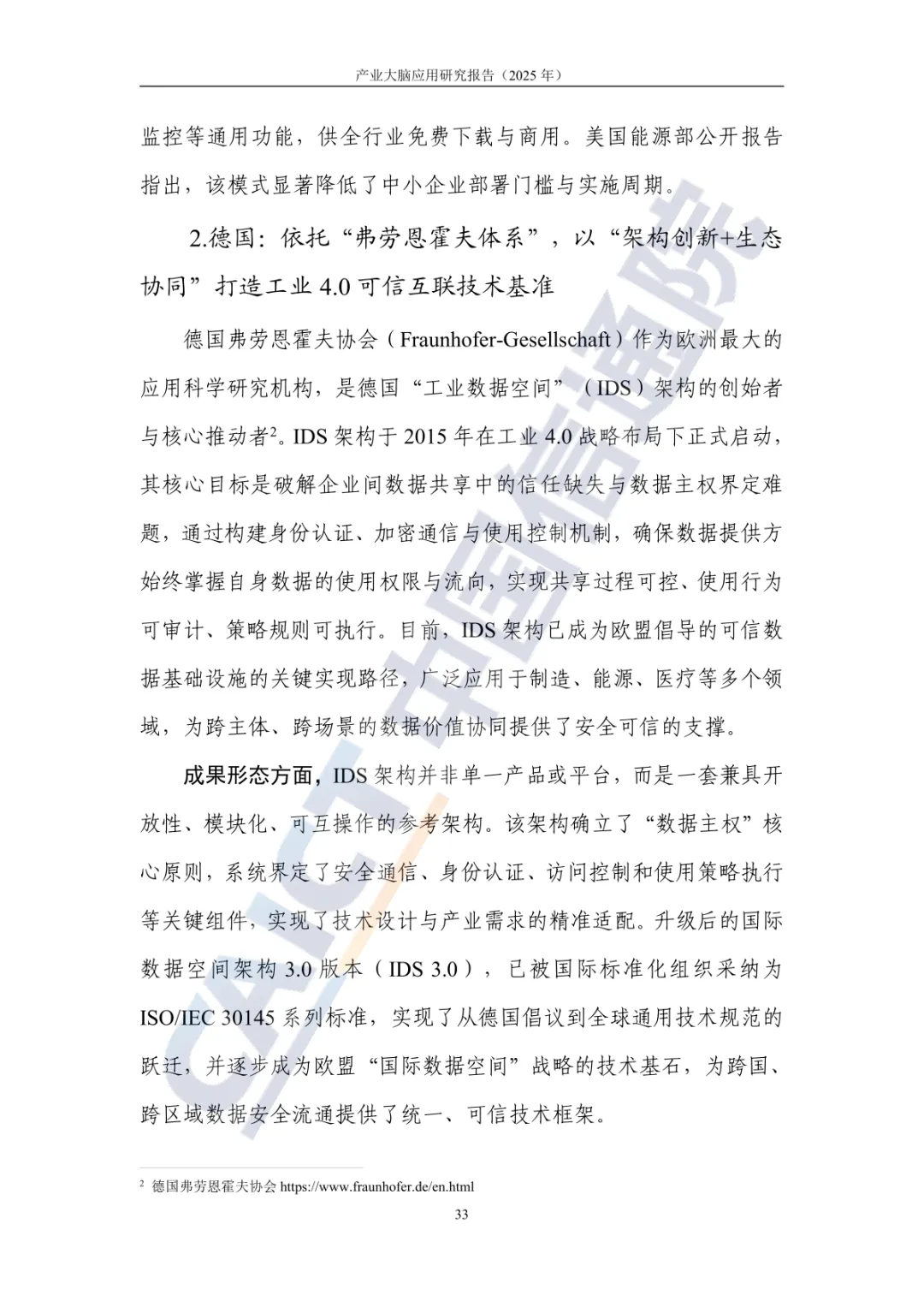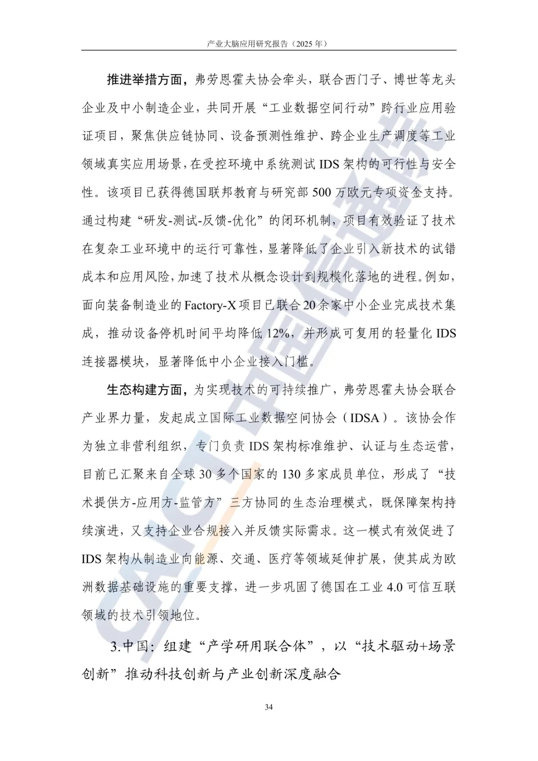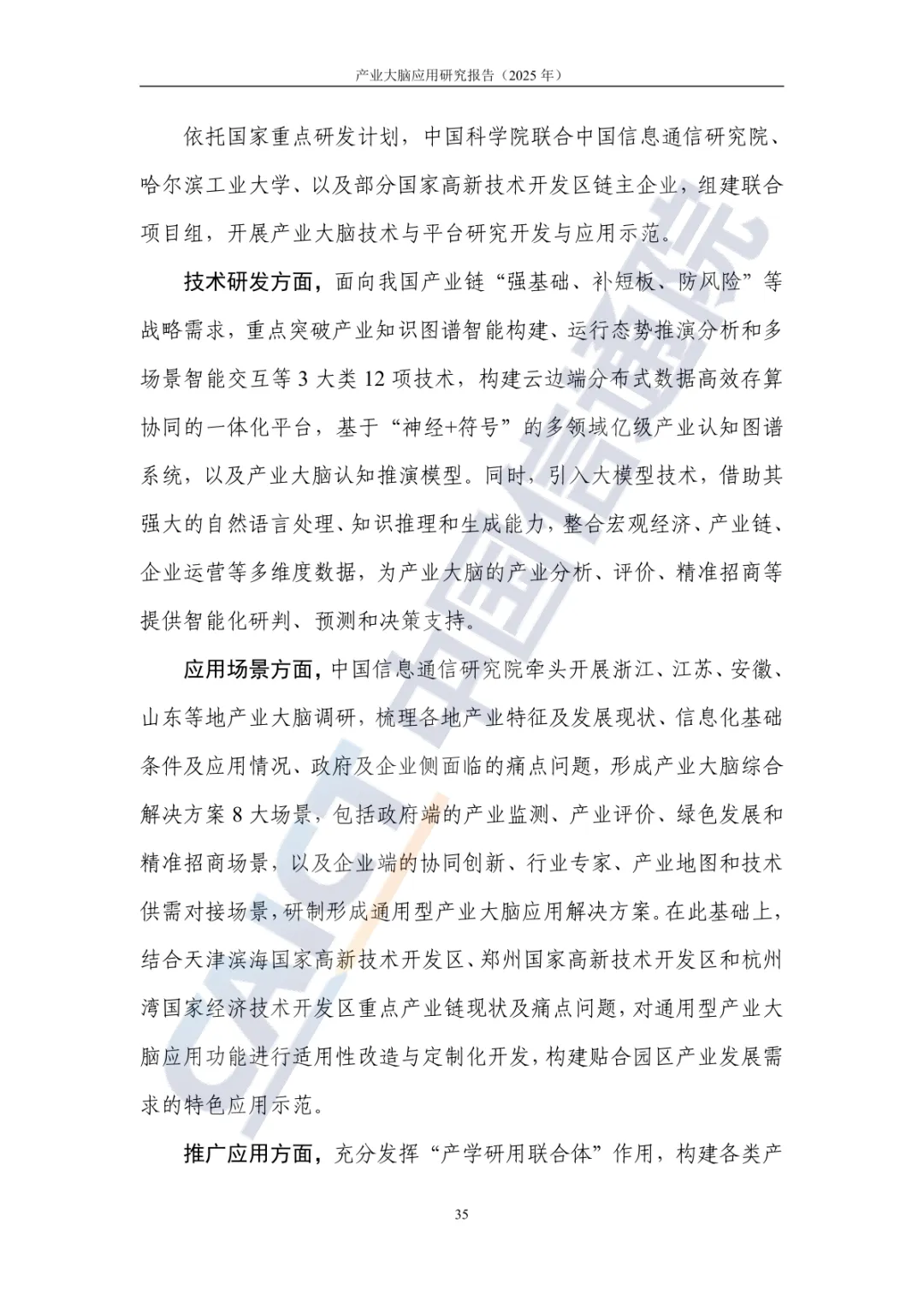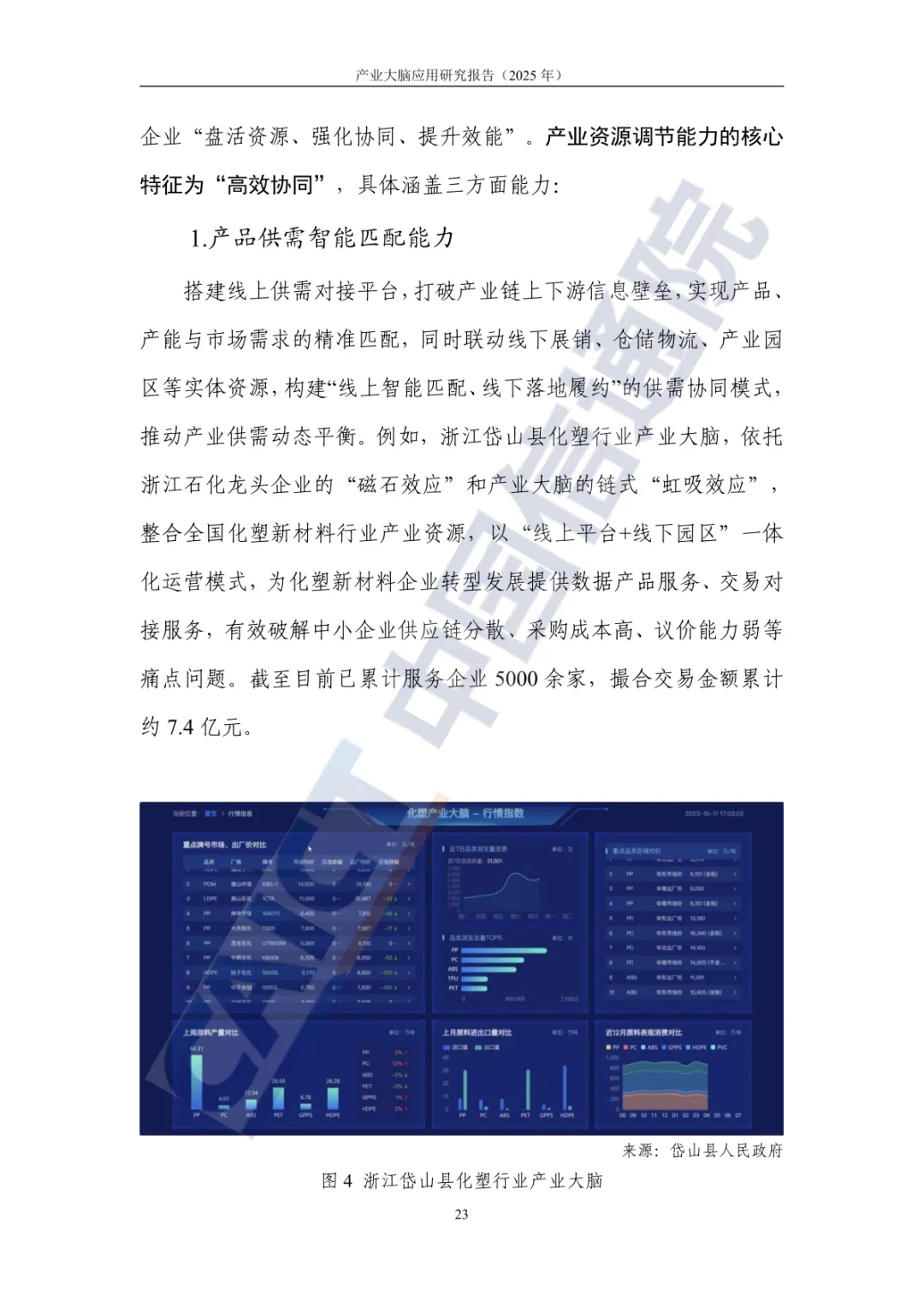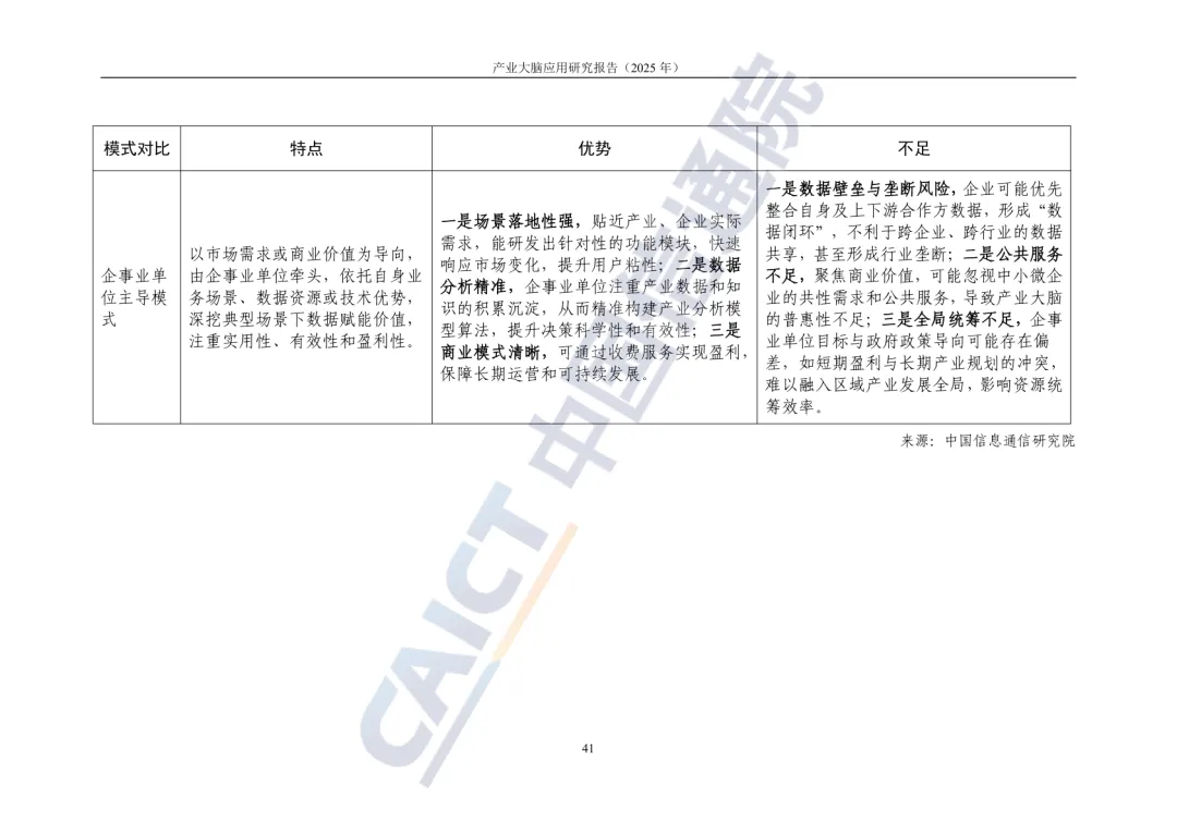 导读:报告立足建设现代化产业体系、发展新质生产力的时代背景,系统界定产业大脑为依托大数据、人工智能构建的产业级数字神经中枢,明确其在政府、产业、企业侧的核心价值。报告梳理出产业大脑基础感知、深度理解、智能决策、自主进化四大发展阶段,当前我国正处于基础感知向深度理解过渡的关键时期。报告构建起动态感知、全景认知、智能决策、资源调节四位一体的能力图谱,提炼出地方政府、科研和行业组织、企事业单位主导的三类建设应用模式,并分析各模式的特点与优劣势。报告指出我国产业大脑发展面临数据共享不充分、标准规范不统一等现实瓶颈,从生态协同、标准统一、技术赋能、模式创新、评估评价等方面提出针对性发展建议,助力产业大脑从建设走向高效可持续运营,为现代化产业体系建设提供战略支撑。