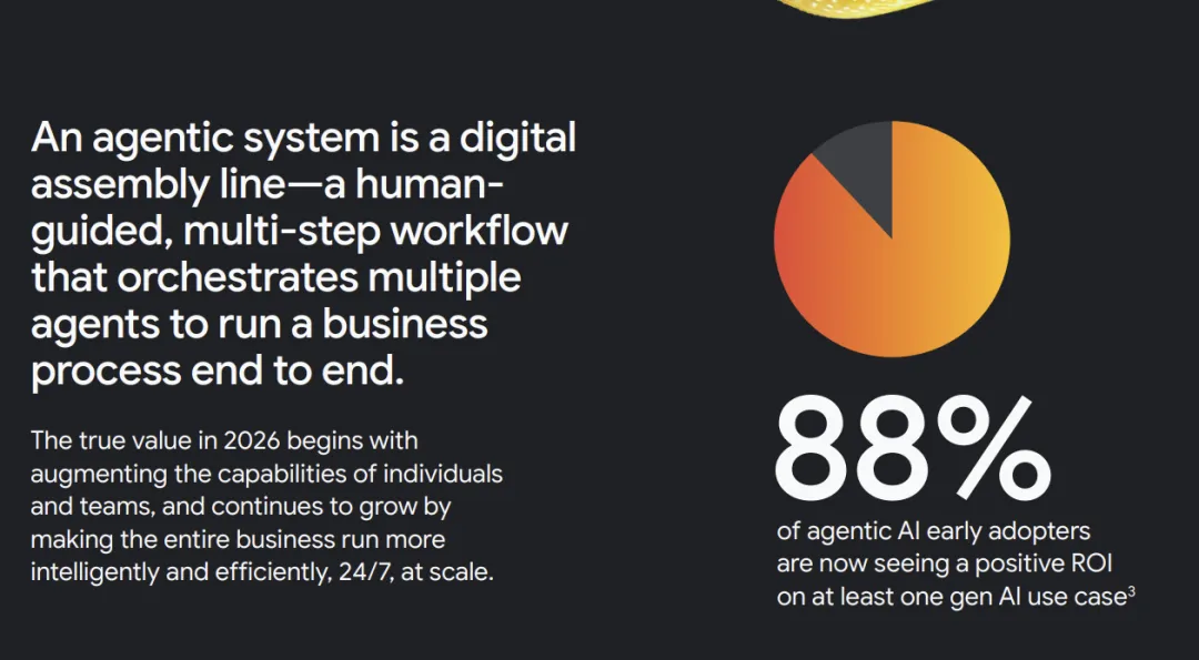 推动这种转变的原因是ROI。88%的早期使用者已在生成式AI应用上看到正向回报。用Agent干活真的能省钱。当老板发现能省掉一半人工成本时,变革就不是“要不要做”的选择题,而是“做多快”的时间问题。
