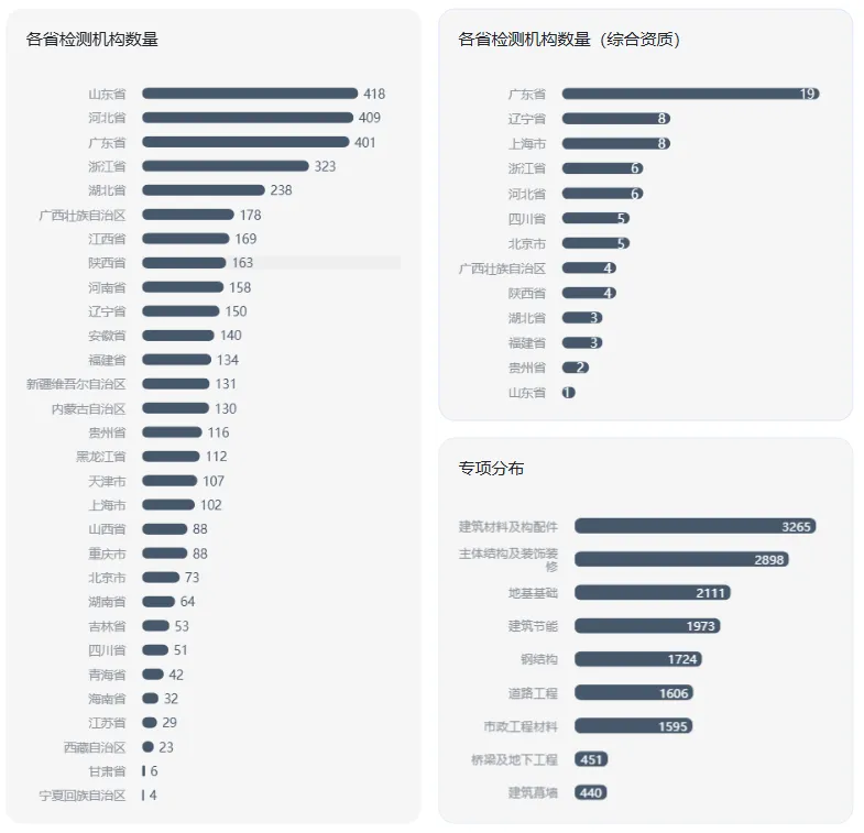 小编以建工领域检测企业目前机构数量给大家展示一下目前的行业现状及分析: